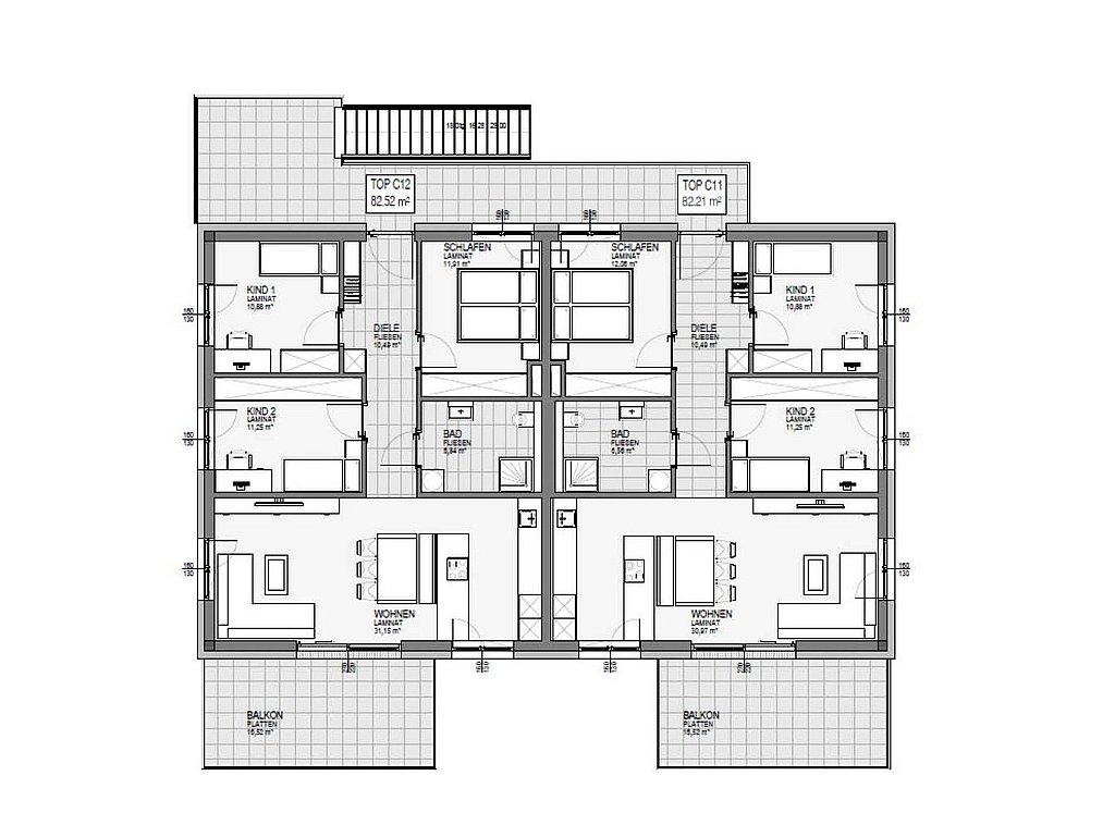 Gemütliche Sommerabende lassen sich auf den überdachten Terrassen der Erdgeschoß-Wohnungen erleben, die dazugehörigen Eigengärten vergrößern zusätzlich den Lebensraum und bieten Platz für Hobby und Freizeitvergnügen aller Art. Die großzügigen Balkone (5,90 x 2,80 m) im Obergeschoß erweitern den Wohnraum nach außen hin.