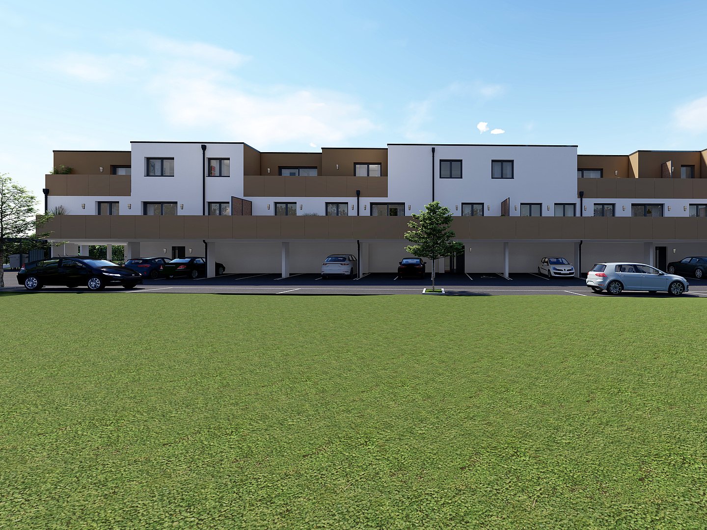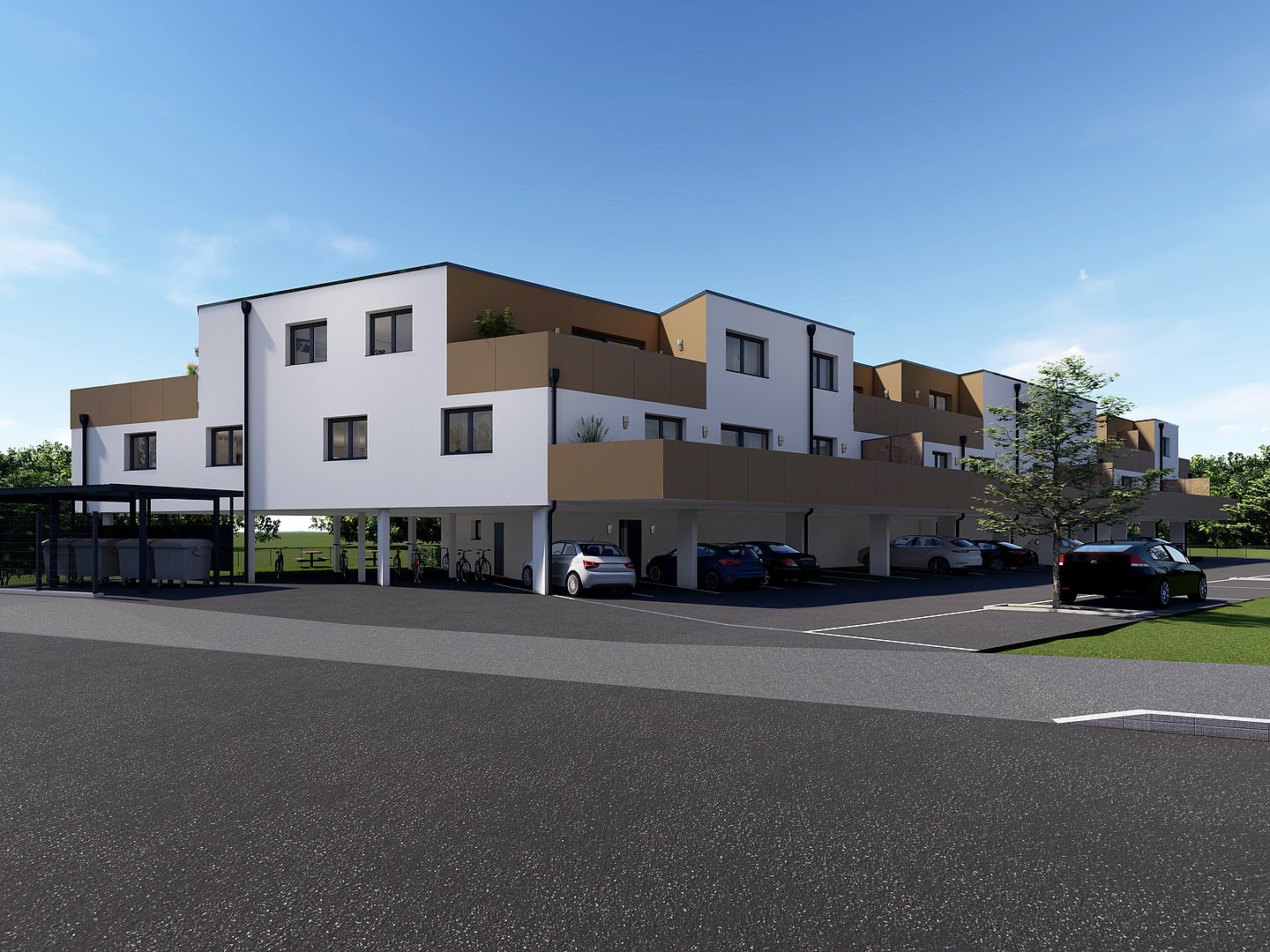 - 1 Parkplatz je Wohnung – großteils überdacht